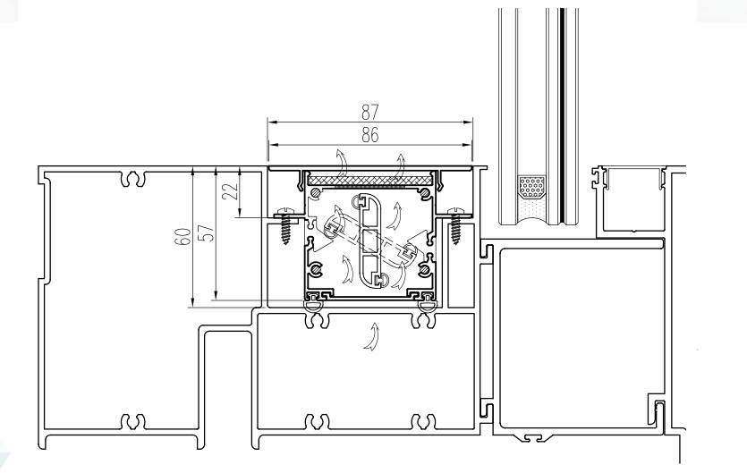 在不影響外立面效果的同時,杜絕了開啟扇的安全隱患。其安裝形式多樣化,可以安裝在橫梁的室內(nèi)側、嵌入橫梁腔體內(nèi)、橫梁的下側、